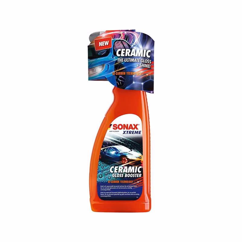 SONAX XTREME Ceramic Gloss Booster ger snabbt och enkelt lacken en fantastisk lyster och högglans med en extremt hal yta. Lämnar inga ränder. Lätt ytlig smuts såsom damm, fingeravtryck o.s.v. avlägsnas enkelt. Fräschar upp existerande lackskydd och ger en förstärkt avrinningseffekt. Lämpar sig även till folierade ytor, metall, slät plast och gelcoat som man vill höja glansen på. Finns i förpackning om 750 ml och 5 liter.
